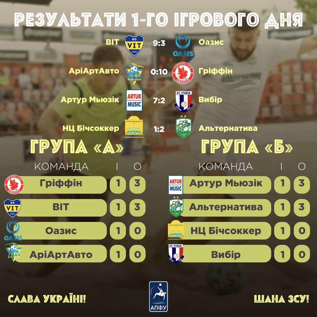 У стартовому поєдинку ЧУ-2023 чинний чемпіон України «ВІТ» доволі впевнено переміг команду «Оазис», яка представляє Запоріжжя та Оріхів 9-3. У киян хет-трик у свій актив записав Максим Войток, а Олександр Самойленко дубль. Також по голу провели Олег Будзько, Ярослав Войток, Іван Глуцький та Олександр Рисенко. Але відзначимо і запорізьку команду, яка змогла аж тричі вразити ворота чинних чемпіонів - двічі забив Дмитро Єсаулов та одного разу Данило Мацюта.