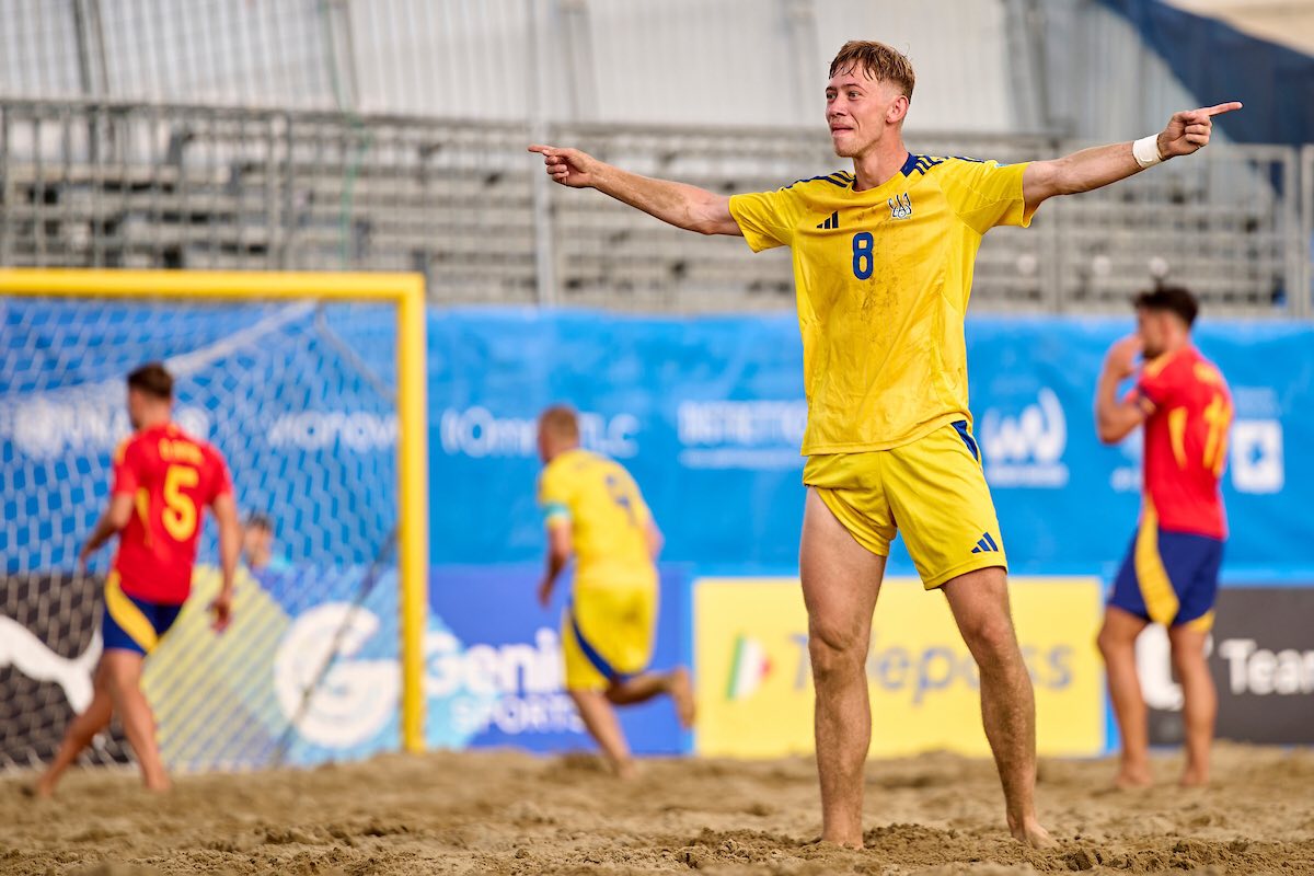 Збірна України у другому турі Суперфіналу Євроліги з пляжного футболу 2025 продемонструвала яскраву гру, але поступилася команді Іспанії 4:5.